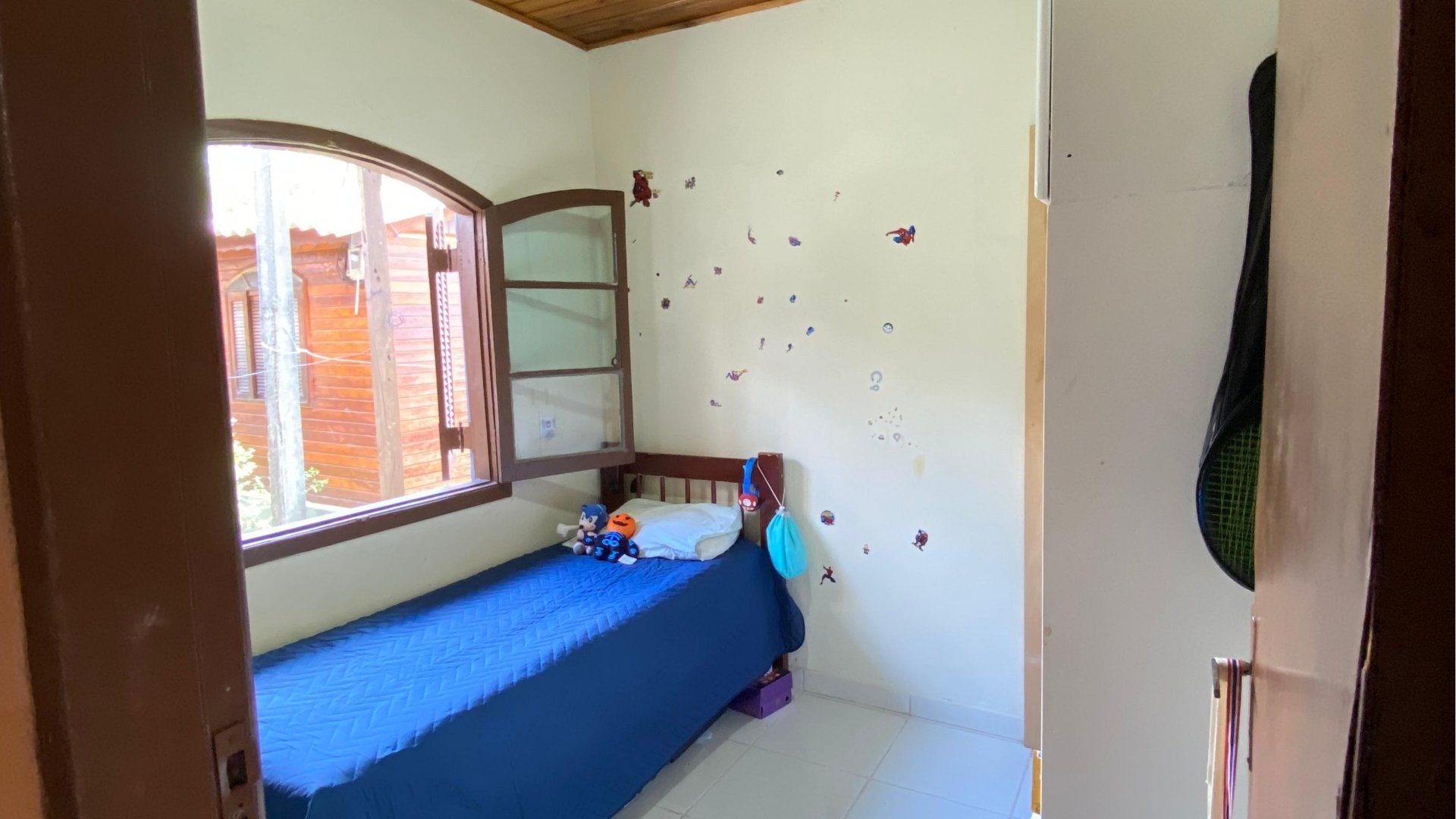 O chalé é construído em alvenaria e conta com 3 dormitórios bem distribuídos, oferecendo conforto e privacidade para toda a família. Possui 1 banheiro funcional, atendendo perfeitamente às necessidades do dia a dia.